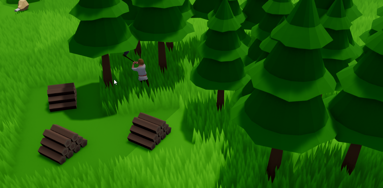 - Villagers gather materials from the ground or from stockpiles