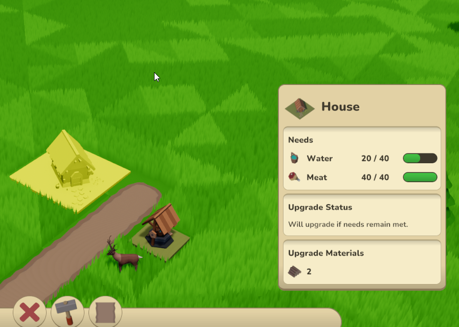 - Houses upgrade automatically when their needs are fulfilled